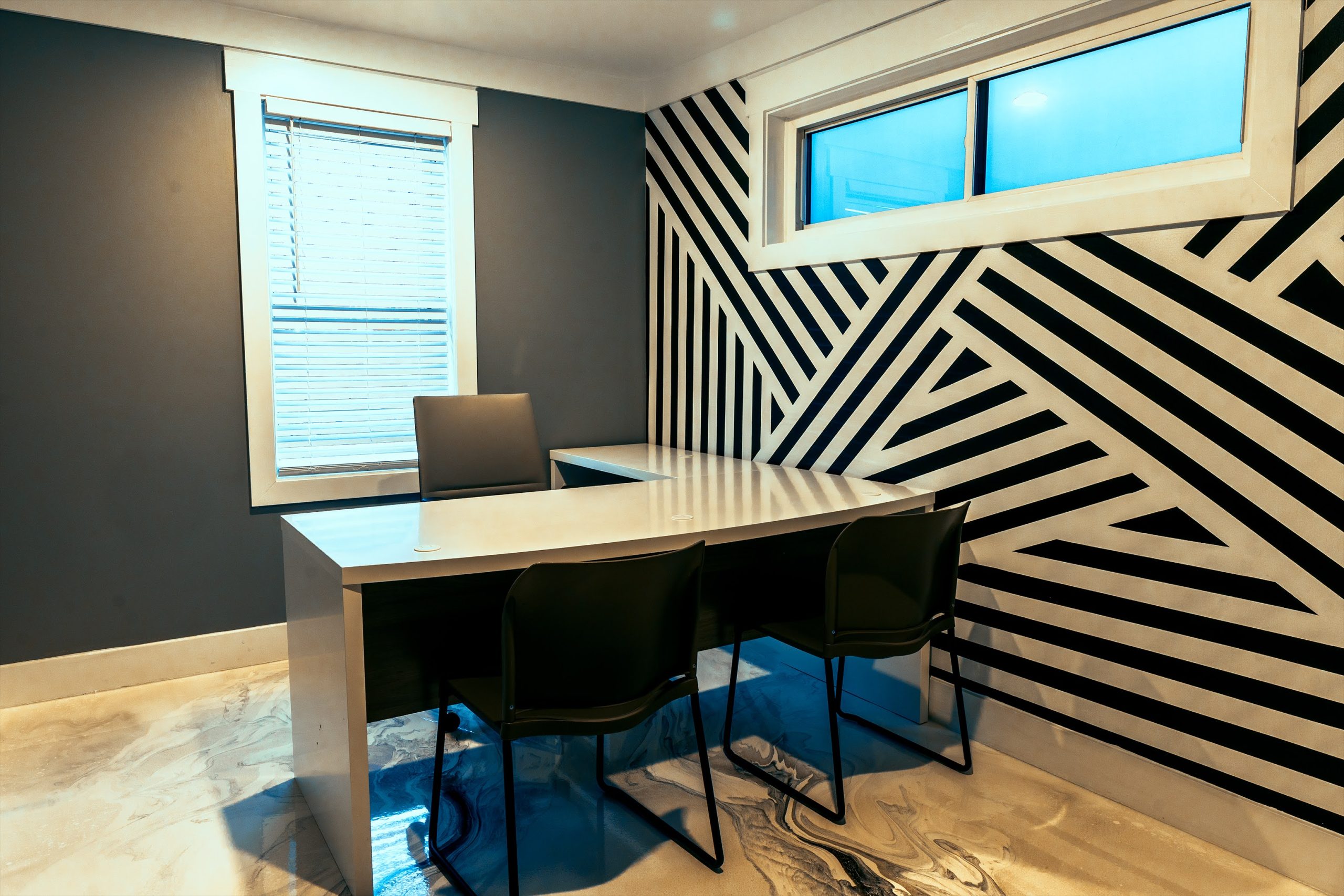 Virtual offices include a mailbox with an address for your use, as well as one office to be used 2x per month (if available, 4 hrs max per use) and a 5% discount on conference room use.